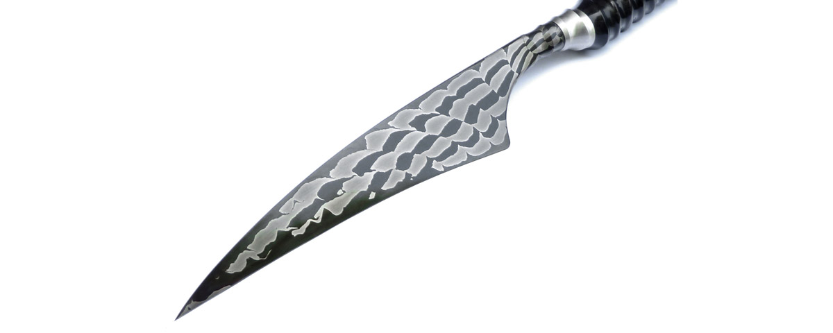 Klinge: handgeschmiedeter ScorpioDesign-Damaszenerstahl „Torsion“