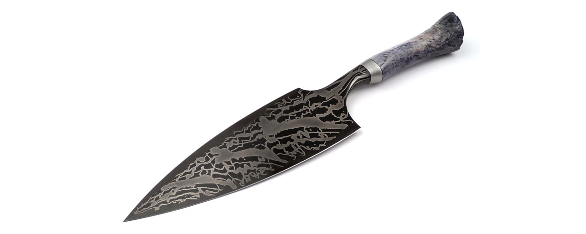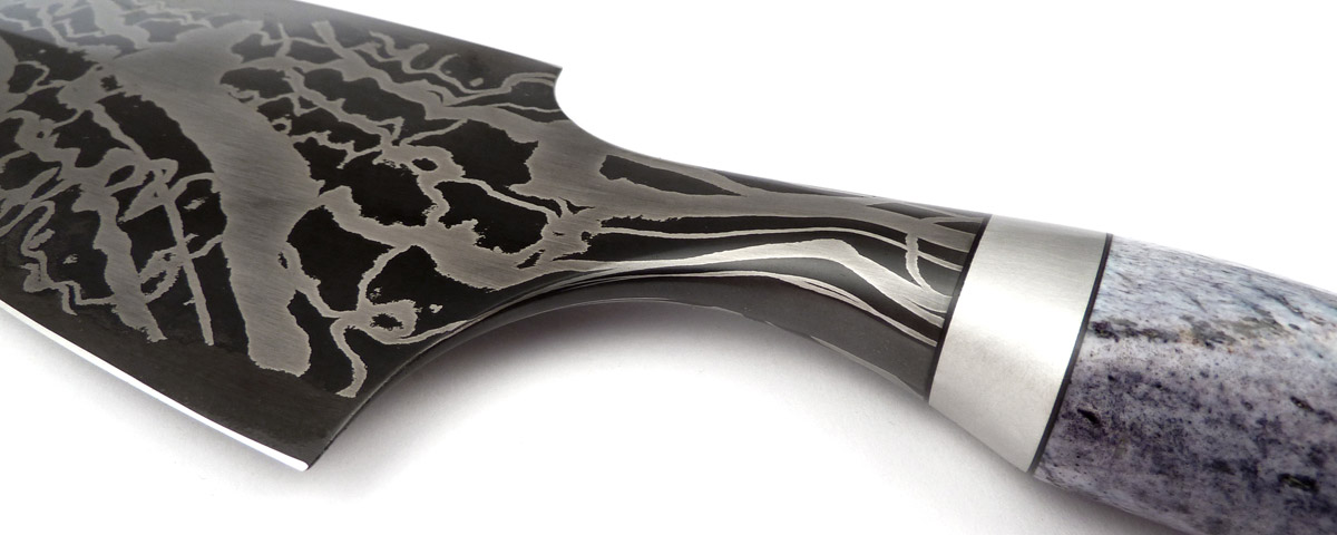 Hier finden Sie bereits verkaufte oder unverkäufliche Messerkunstwerke. Die meisten der gezeigten Varianten können auf Bestellung für Sie neu angefertigt werden. Da bei Damaszenerstahl und Naturmaterialien jedes Stück einzigartig ist, ergeben sich kleinere Variationen in Musterung und Färbung – jedes Messer ist individuell.