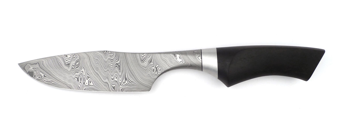Klinge: handgeschmiedeter ScorpioDesign-Damaszenerstahl „Spirograph“